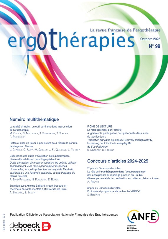 Achat de la revue ergOThérapies n°99 (Octobre 2025) en ligne + accès illimité à votre bibliothèque numérique.